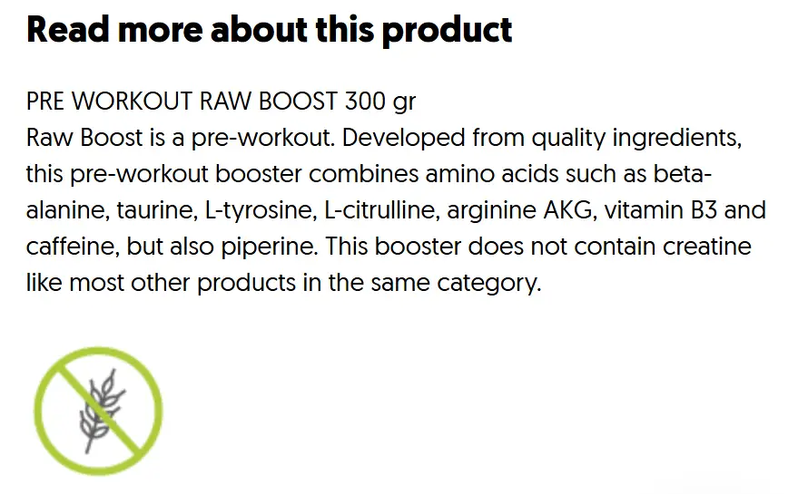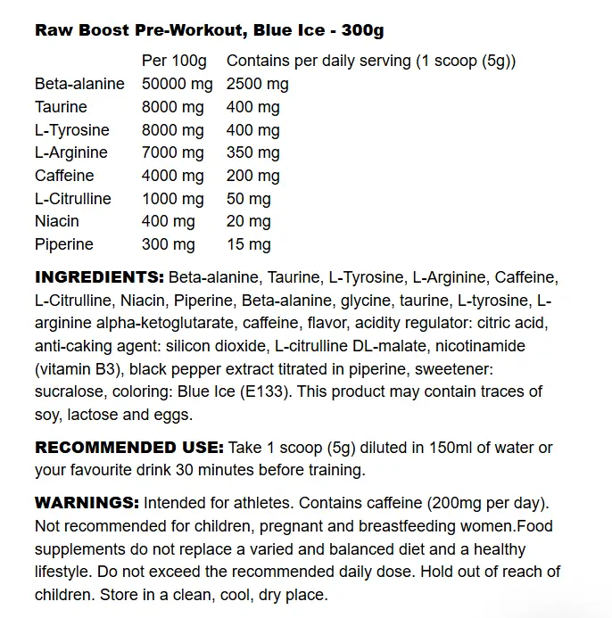 ✅ Utan kreatin & gluten – ren formula för dig som vill ha kontroll: Till skillnad från många andra pre-workoutprodukter innehåller Raw Boost ingen kreatin, vilket gör den idealisk för dig som vill undvika vätskeansamling eller som redan doserar kreatin separat. Produkten är dessutom glutenfri och innehåller inga spår av soja, laktos eller ägg, vilket gör den lämplig för känsliga individer.