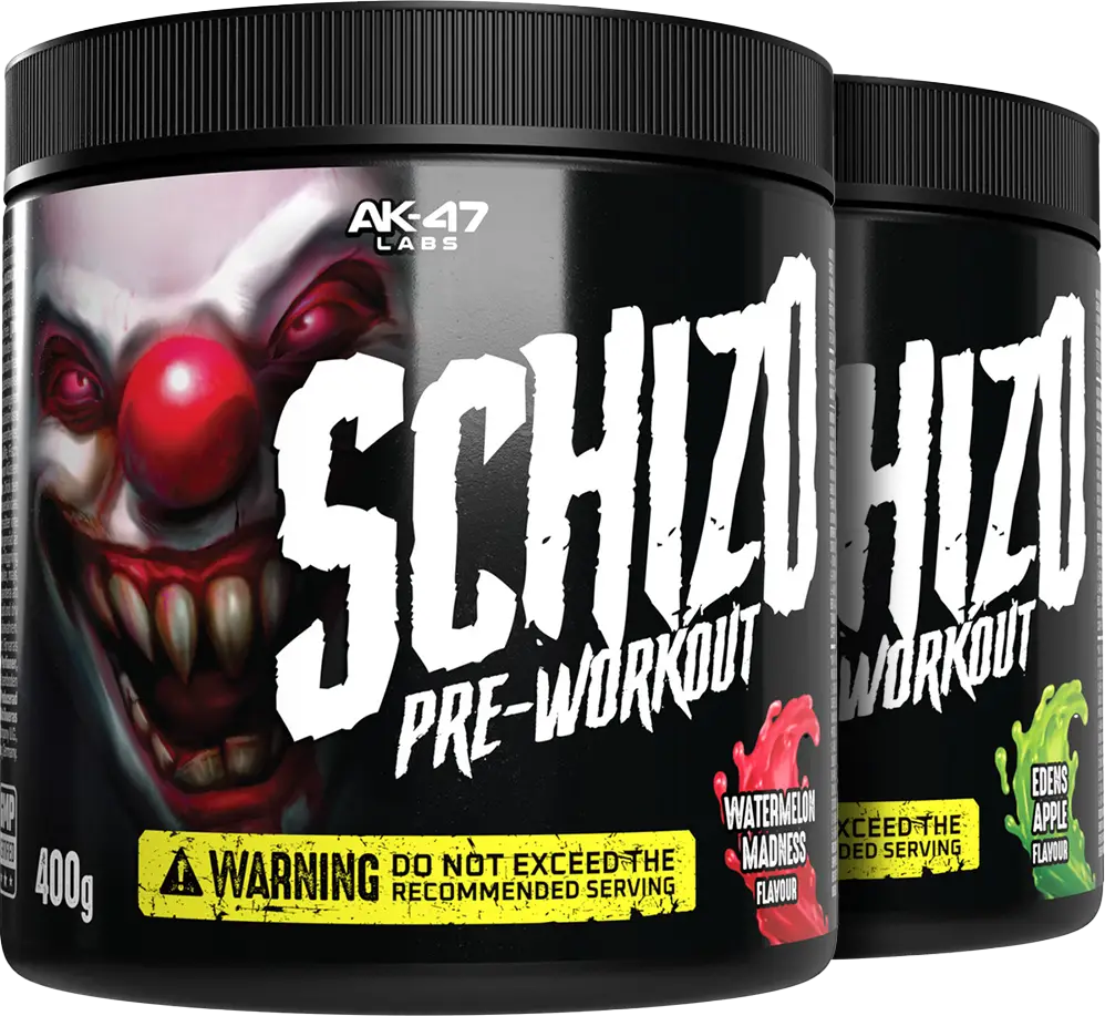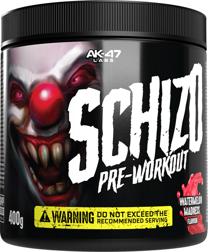 AK-47 Labs Schizo Pre-Workout sticker ut från alla andra tråkiga pre-workouts. Den erbjuder en fullständig energiblend med 200 mg koffein, 500 mg taurin, 1600 mg beta-alanin, L-citrullin och mer för det ultimata energilyftet. Men det är inte allt du får.