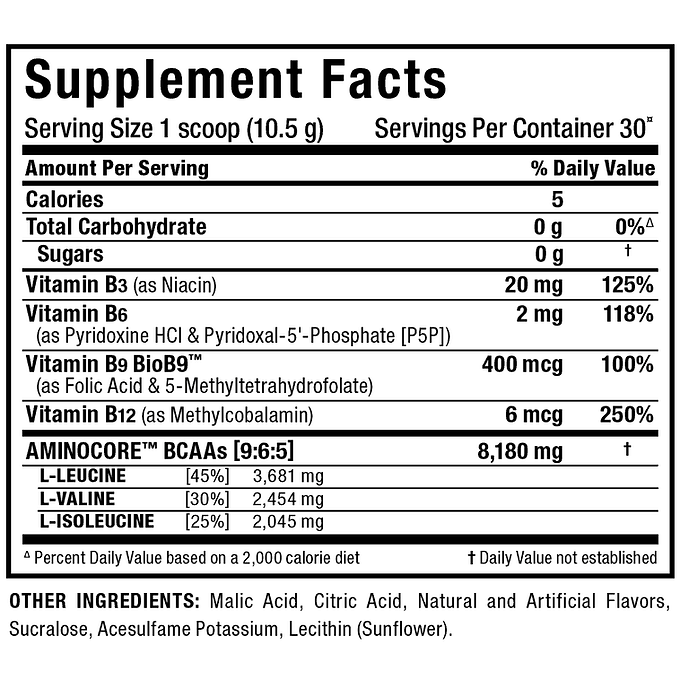 BCAA-aminosyror, inklusive leucin, valin och isoleucin, kan inte produceras av kroppen själv och måste därför tillföras genom kosten eller tillskott. Genom att använda AllMax Aminocore tillför du kroppen de nödvändiga byggstenarna för muskeltillväxt och minskar samtidigt risken för muskelnedbrytning. Detta är särskilt viktigt under perioder av intensiv träning eller kalorirestriktion då kroppen har ökad risk för att bryta ned muskelmassa för energi.