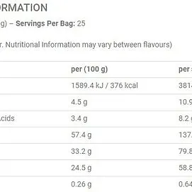 Proteinet kommer från tre avancerade källor vilket kombineras med kolhydrater från havre. Critical Mass innehåller även HMB, HICA, ALA, MCT, krom och kreatin.