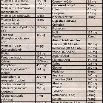 Designat speciellt för idrottare och professionella kroppsbyggare som utför ansträngande träningspass. Forskning visar tydligt att hård och intensiv träning och restriktiva dieter kan få negativa konsekvenser och orsaka en betydande förlust av vitaminer och mineraler.