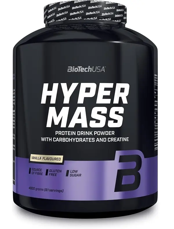 Hyper Mass innehåller tre olika kolhydratkällor med varierande glykemiska index, vilket ger både snabb och långvarig energi. Den unika Protein Blend med vassleproteinkoncentrat, kalciumkaseinat och vassleproteinisolat säkerställer en konstant tillförsel av aminosyror. Mikroniserat kreatinmonohydrat förbättrar styrka och uthållighet, medan den sockerfria sammansättningen gör Hyper Mass till ett hälsosamt val för viktuppgång.