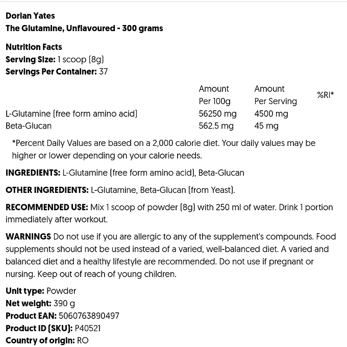 Dorian Yates – The Glutamine är speciellt utformad för att lösa detta problem och optimera återhämtningsprocessen. Varje portion innehåller 4,5 gram glutamin, vilket är idealiskt för att intas omedelbart efter träningen. Detta hjälper till att kickstarta återhämtningen och säkerställer att musklerna får den nödvändiga mängden glutamin för att återhämta sig effektivt.