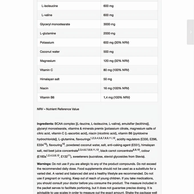 BCAA i förhållandet 4:1:1: Stöder muskelåterhämtning och minskar muskelnedbrytning under intensiva träningspass.