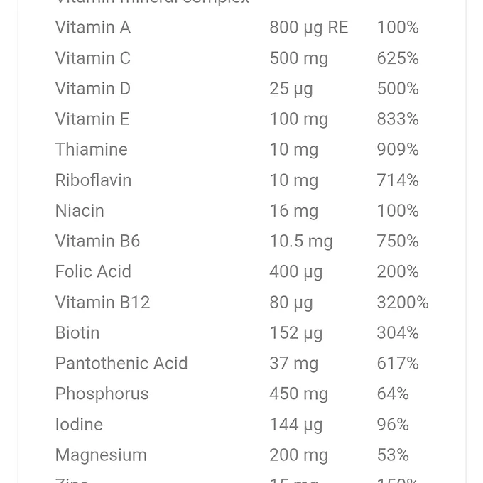 Kosttillskott med vitaminer och mineraler som stärker immunförsvaret, främjar energiproduktion, stödjer muskelfunktion, förbättrar kognitiv funktion och bidrar till hudens hälsa. Rekommenderas för fysiskt aktiva individer, äldre vuxna och de med specifika näringsbehov. Alltid rådfråga läkare innan användning.