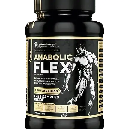 LEVRONE ANABOLIC FLEX. Kosttillskott. Produkten är avsedd för fysiskt aktiva vuxna. Vitamin C bidrar till normal kollagenbildning för normal funktion av ben och brosk. Zink, vitamin D, mangan och magnesium bidrar till upprätthållandet av normala skelett. Mangan bidrar till normal bildning av bindväv.
