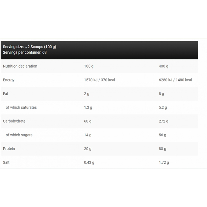 Det rekommenderas att konsumera 1-2 portioner dagligen, 100 gram av pulvret. Personer som väger över 90 kilo kan konsumera 150-200 gram i en enda portion. På träningsdagen, 1:a portionen på morgonen efter att ha gått upp eller mellan måltiderna, 2:a portionen efter styrketräning. En dag utan träning, 1:a portionen på morgonen efter att ha gått upp, 2:a portionen mellan måltiderna. 2 hela skopor = 100 g pulver.