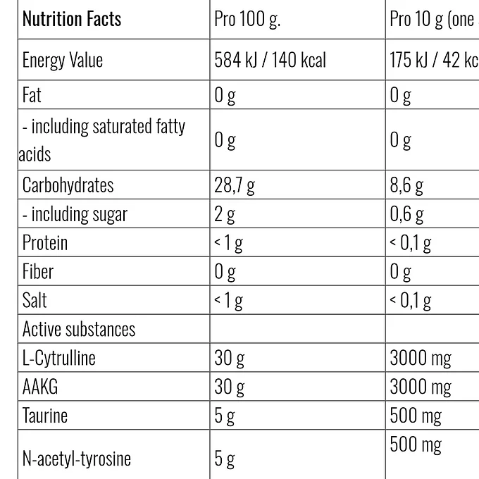 Angry Pump ger så mycket som 3000mg citrullin och 300mg AAKG vilket i sin tur kan bidra till att förbättra prestations- och träningsresultat.