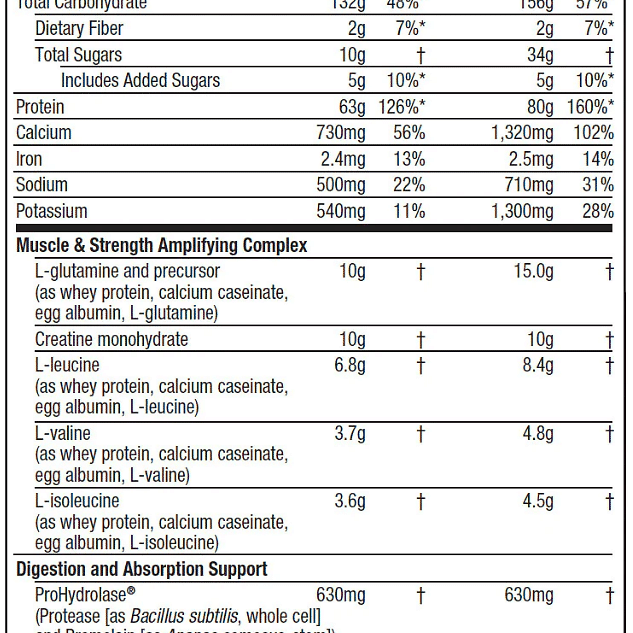 Varje portion ger mer än 130 g kolhydrater som ett flerfas kolhydratkomplex och ökar insulinnivåerna och transporterar t.ex. kreatin snabbt in i musklerna och främjar regenereringen av muskelglykogen, vilket hjälper till att försätta kroppen i ett anabolt tillstånd.