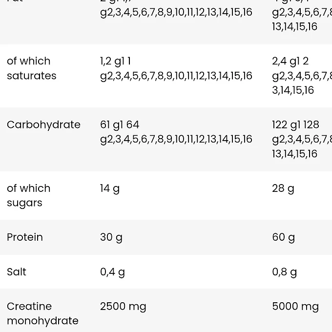 Massodlingsprodukt för att förbereda en drink av näringsrika proteiner och kolhydrater berikad med kreatin och l-glutamin. Skapad för högintensiva övningar. Protein bidrar till tillväxt och stöd för muskelmassa.
