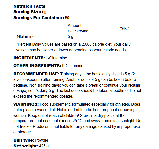 ✅ Stödjer muskeluppbyggnad – L-glutamin är en central del av proteinstrukturen och är en viktig byggsten i muskelvävnad som bidrar till att reparera, öka och bibehålla muskelmassa. Genom att komplettera med detta tillskott kan du maximera din återhämtning, minska muskelnedbrytning och skapa de bästa förutsättningarna för muskelväxt. Perfekt för dig som vill ta din träning till nästa nivå!
