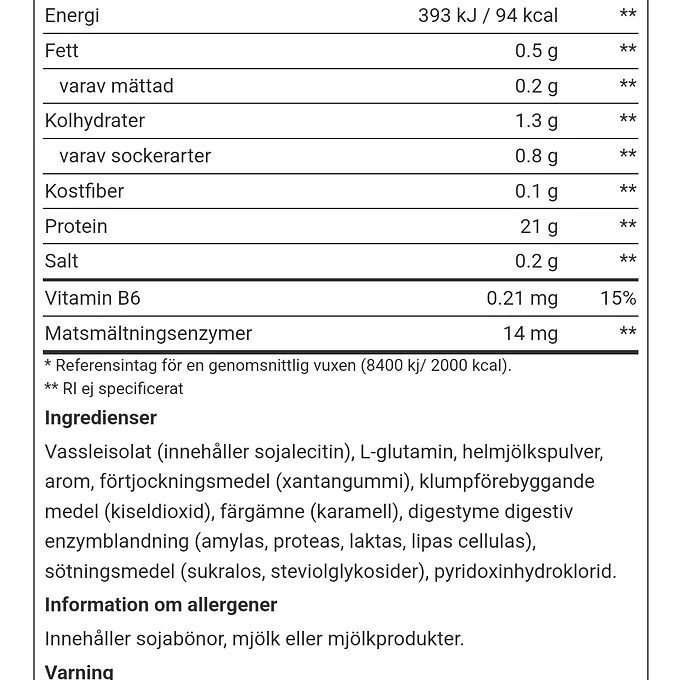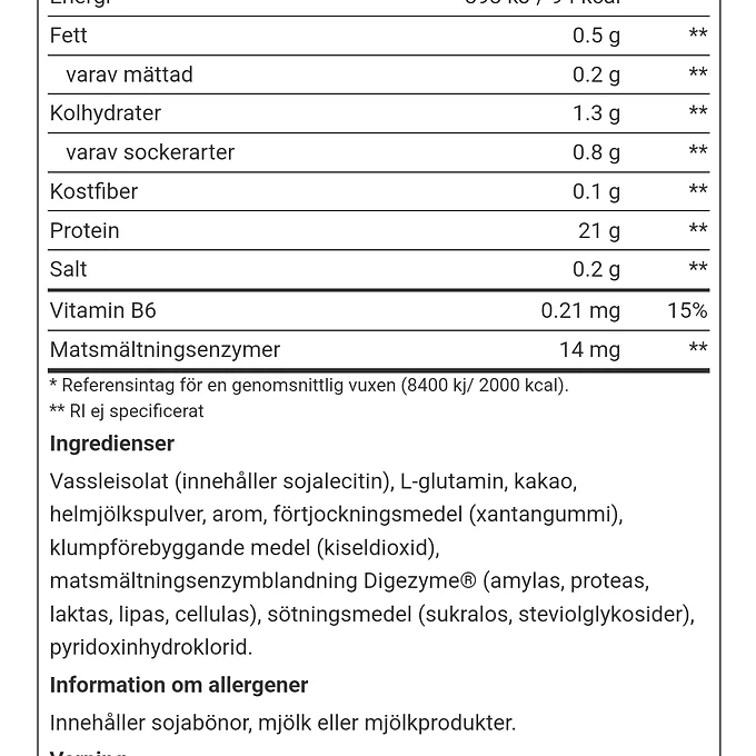 Ett läckert CFM-vassleisolat berikat med L-glutamin, vitamin B6 och ett komplex av matsmältningsenzymer.
