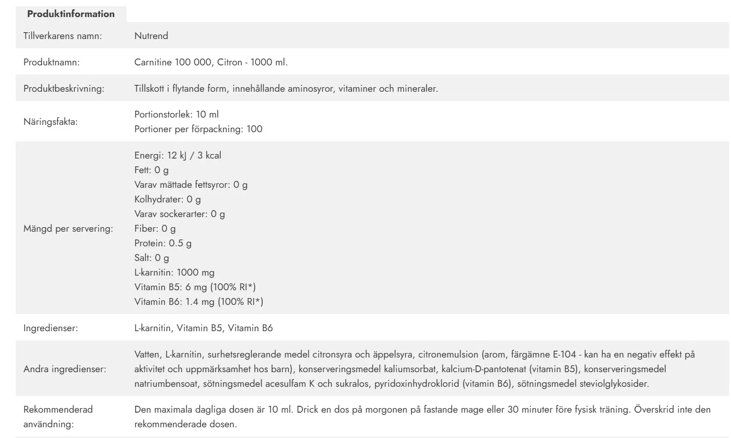 NUTREND – Carnitine 100 000: Förbättra din fysiska prestation och energiomsättning