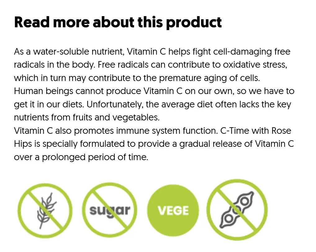 ✅ Gradvis frisättning: Formulan är utvecklad för att ge en jämn och långvarig tillförsel av C‑vitamin under dagen.