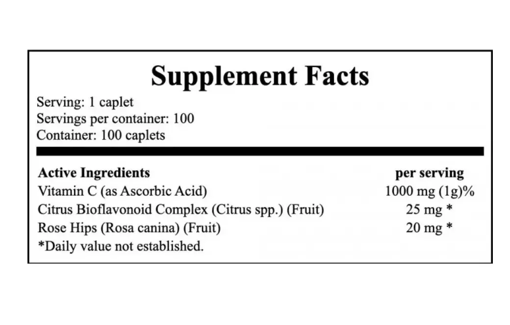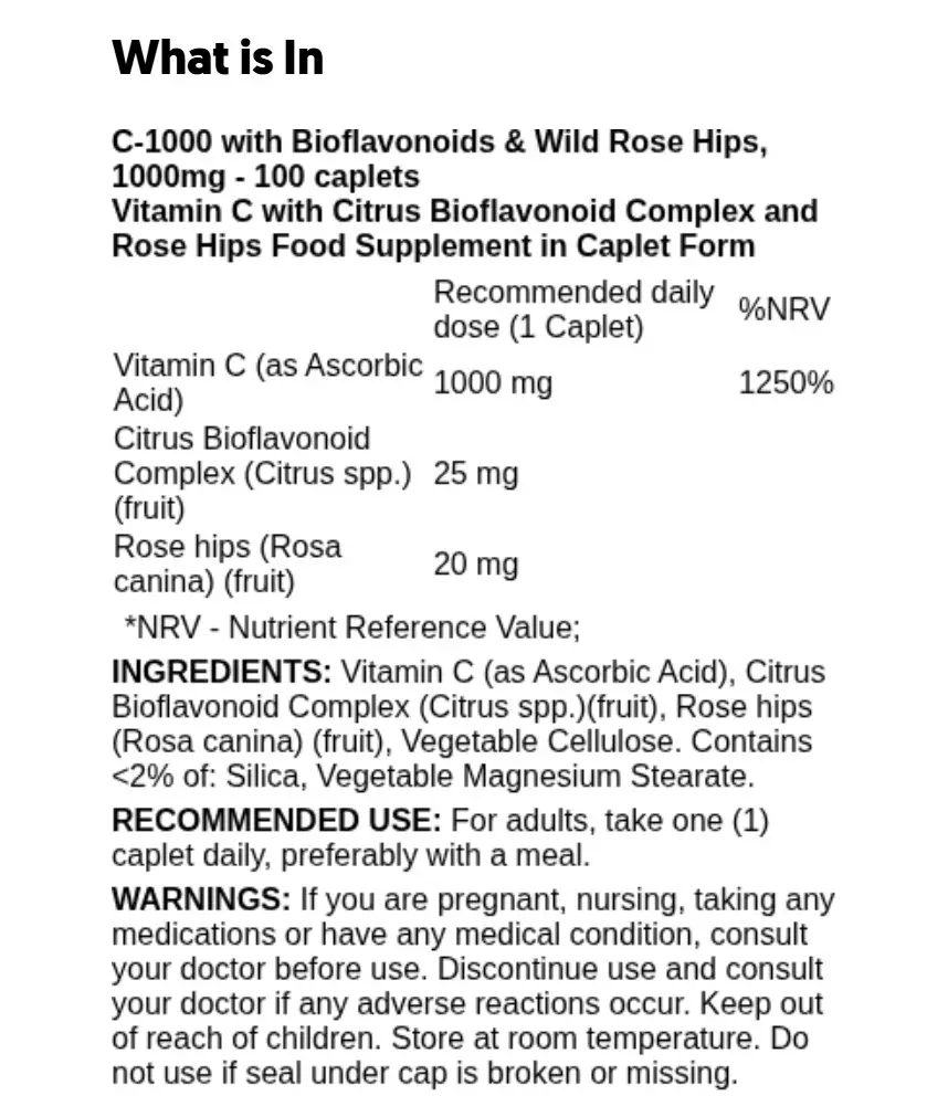 | Vitamin C (som L‑askorbinsyra) | 1000 mg | 1250% |