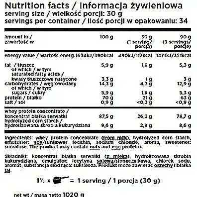 WheyOne från Red Support är ett unikt vassleproteinkoncentrat som erbjuder dig koncentrerade doser av rent protein för att maximera effekten av din träning. Denna produkt skapades för att ge dig dem nödvändiga näringsämnena för att effektivt bygga muskler och påskynda återhämtningen efter en intensiv träning och kommer också att vara ett läckert tillskott till din kost.