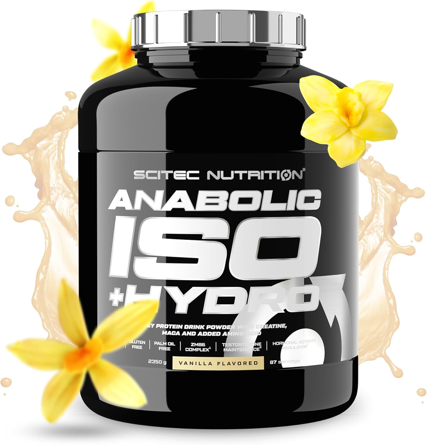 Scitec Nutrition Anabolic Iso+Hydro är ett välsmakande protein av vassleisolat och hydrolyserat vassleisolat berikat med HMB, makaextrakt och ZMB6. Vassleisolat och hydrolyserat är bland de snabbast verkande proteinerna som kännetecknas av hög biotillgänglighet och en utmärkt aminosyraprofil. Anabolic Iso+Hydro innehåller upp till 24 g kvalitetsprotein per portion, vilket bidrar till tillväxt och underhåll av muskelmassa.