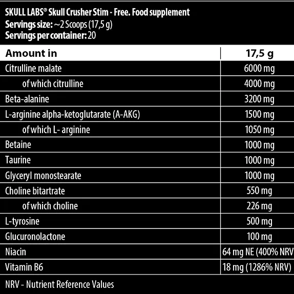 Skull Labs – Skull Crusher Stimulantfri är en utmärkt produkt för de som letar efter en PWO utan några stimulantia.