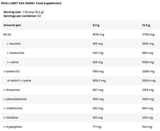 Skull Labs EAA Amino aminosyrorna som du absolut måste tillföra din kropp. Utan deras bidrag är det inte möjligt att bygga muskelmassa.