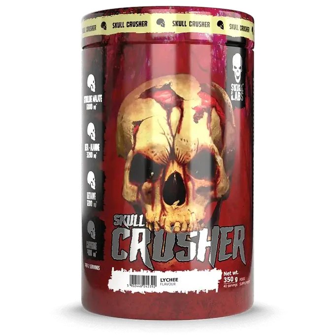 Skull Crusher Lychee – 40 serv. från Skull Labs. Skull Crusher från Skull Labs, en av världens mest kraftfulla Pre-workouts med 200mg. Koffein per skopa (8,75g.)
