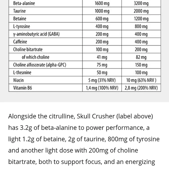 Det finns forskning som stöder användningen av vissa ingredienser i Skull Labs – Skull Labs® Skull Crusher. En studie publicerad i Journal of the International Society of Sports Nutrition fann att citrullinmalat kan förbättra fysisk prestation och minska trötthet under träning. En annan studie publicerad i Journal of Strength and Conditioning Research visade att beta-alanin kan öka muskelcarnosinnivåerna och förbättra träningskapaciteten. Det finns också forskning som tyder på att betain kan ha positiva effekter på styrka och muskeluthållighet.