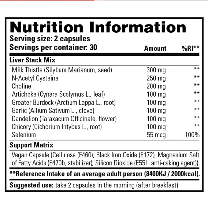 Liver Stack från Stacker2 Europe är en avancerad leverformel som ger en komplett blandning av ingredienser för att stödja leverns hälsa. Produkten innehåller noggrant utvalda ingredienser som bidrar till att skydda levern mot skador och främjar dess optimala funktion. Med ingredienser som mjölktistel, kardborre och cikoria, erbjuder Liver Stack ett effektivt skydd för levern.