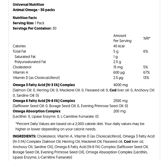 Universal Nutrition – Animal Omega är det optimala kosttillskottet för kroppsbyggare och träningsentusiaster som söker att förbättra sin prestation, återhämtning och övergripande hälsa. Genom att tillföra de rätta fettsyrorna i rätt balans kan Animal Omega hjälpa till att stödja en optimal ämnesomsättning, hormonproduktion, kardiovaskulär hälsa och fettförbränning. Det är ett viktigt tillskott för långsiktiga fysikmål och kan vara en del av en omfattande ”fundamental stack” tillsammans med andra djurtillskott från Universal Nutrition.