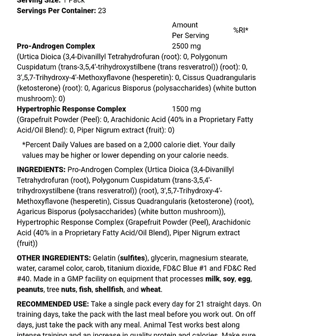 Animal Test är ett professionellt tst-stimulerande medel som kombinerar mycket effektiva extrakt av den mest potenta, effektiva och senaste vetenskapliga forskningen. Bygg ren muskelmassa på kortast möjliga tid och utan biverkningar. Animal Test är vägen till en monströs kroppsbyggnad och obegränsad kraft. Det är den starkaste produkten från Animal-sortimentet. Den pro-androgena kompositionen innehåller dynamiskt verkande växtextrakt och ämnen som ökar nivån av fri och total tst. En högre nivå av tst leder till större och snabbare muskelvinster och samtidigt till en ökning av verklig styrka.
