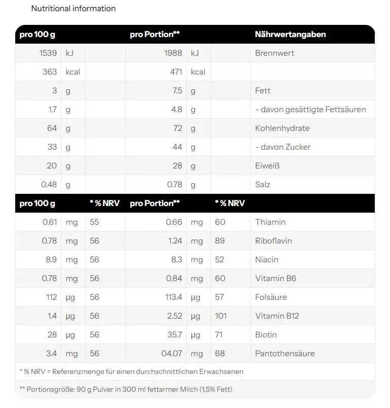 ✅ Mikronäringskomplex för extra stöd: Berikad med niacin, pantotensyra, vitamin B6, B1, folsyra, biotin och B12 – viktiga för energiomsättning och proteinsyntes.